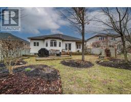 Curb appeal at its finest in this custom-built 3+1 bedroom, 3 bath bungalow with double-car garage, ideally situated on a desirable tree-lined street full of character. The striking stucco exterior makes a wonderful first impression, while inside, bright maple hardwood flooring flows through the living and dining rooms and into the kitchen, dinette, and great room. Designed with both comfort and entertaining in mind, the open-concept kitchen overlooks the dinette and family room, where a cozy gas fireplace and an abundance of windows provide beautiful views of the private, fully fenced, treed backyard. Sliding doors from the dinette lead to two decks, with a covered area creating the perfect setting for outdoor enjoyment. The spacious primary bedroom is bright and inviting, complete with a walk-in closet and 4-piece ensuite. Two additional bedrooms, a 4-piece main bath with large linen closet, and main floor laundry add to the home's functionality. The finished basement extends the living space with a large rec room featuring a gas fireplace and bar, an additional bedroom, 3-piece bath, and cold cellar. Additional updates include a new furnace and A/C in 2024, plus a one-year-old water softener. Located in the welcoming full-service town of New Hamburg, close to the highway, trails, shopping, and restaurants, this is truly a must-see home. (id:61594)