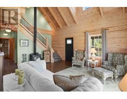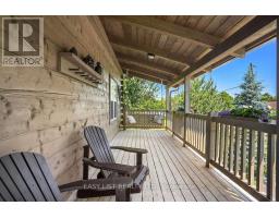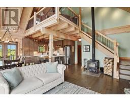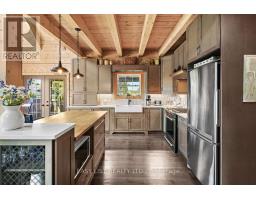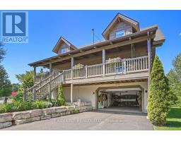 For more information please click the Brochure button below. Welcome to this unique and beautifully appointed timber frame home, nestled in a serene cul-de-sac with water access. Spend your evenings enjoying the view of Canal Lake from your front porch swing, or relax in the backyard overlooking the Executive golf course. The newly landscaped yard, complete with a firepit, offers spectacular sunset views. The open concept main floor features a high vaulted ceiling and a charming airtight stove. This space includes a living room, dining area, and a kitchen equipped with high-end stainless steel appliances, quartz countertops, a large island, marble backsplash, and wide solid wood flooring throughout. Two spacious bedrooms and a full bathroom on the main floor provide comfort for family or guests. Upstairs, a cozy open sitting room overlooks the main floor and leads to the primary bedroom, which boasts a large closet and window seats perfect for curling up with a book. The bright ensuite bathroom includes a heritage clawfoot tub. **EXTRAS** The lower level offers additional living space with a laundry area, full bathroom, kitchenette, and garage access. The upgraded landscaping features perennial gardens, a lush lawn, and armour stone garden borders and stairs. (id:61594)