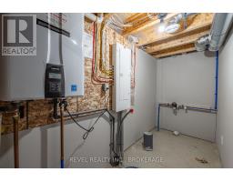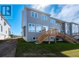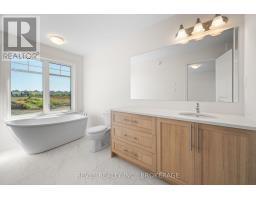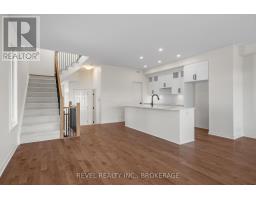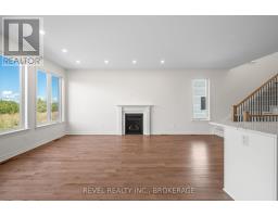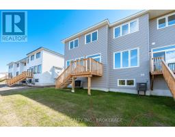 Here is "The Camden", a move-in ready end-unit lookout townhome offering 2,160 sq ft of finished living space in Kingstons northwest Woodhaven community. The main floor features maple hardwood, quartz countertops throughout, a bright kitchen with white shaker cabinetry, upgraded sink, and walk-in pantry, plus a cozy gas fireplace. The primary suite showcases a spa-like 4-piece ensuite with a freestanding tub and walk-in tile/glass shower. The finished lookout basement, complete with a bathroom rough-in, provides versatile additional living space. This ENERGY STAR certified home is designed for comfort, style, and efficiency. (id:61594)