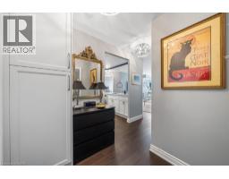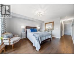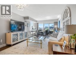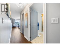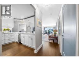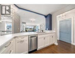 $1,087.36 MonthlyStunning 2 bed, 2 bath condo in sought-after Spencer’s Landing, downtown Burlington. This spacious, beautifully updated unit features engineered brushed white oak flooring, new interior doors/hardware, and a custom kitchen with cabinets (2020) and newer appliances (2021/2022). Both bathrooms boast new vanities; the bright primary offers a walk-in closet and ensuite with soaker tub. Updated electrical outlets throughout. Enjoy lake views from the balcony and dining area. Walk to Spencer Smith Park, waterfront trails, restaurants, shops, and more. The many amenities include an indoor pool, sauna, outdoor gazebo and BBQ area, gym, party room and 24 hour front desk security. Exceptional location with modern upgrades, ready for you to move in! (id:61594)