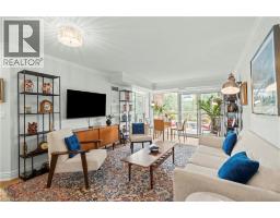 Welcome to refined condo living in the heart of downtown Burlington. This spacious 2-bedroom, 2-bathroom suite offers over 1,000 sq. ft. of beautifully updated living space, ideal for downsizers seeking comfort, convenience, and a lock-and-leave lifestyle. Enjoy a newly renovated kitchen and updated flooring in a bright, open-concept layout perfect for both entertaining and everyday living. Literally steps away from the waterfront, this condo is located directly across from Joseph Brant Hospital and just minutes to downtown Burlington’s shops, restaurants, cafes, grocery stores, and the waterfront, with highway access seconds away for effortless commuting. This well-managed building stands out with premium inclusions, including concierge and security on duty daily from 8:00 AM to 10:00 PM, as well as high-speed internet and Bell cable included in the maintenance fees at no extra cost. Residents also enjoy an indoor pool, hot tub, sauna gym, and entertainment/party room, along with one underground parking space and a locker. An exceptional opportunity to downsize without compromise in one of Burlington’s most sought-after locations. (id:61594)