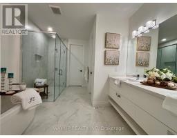 Positioned in one of North London's most prestigious enclaves, this exceptional residence offers a rare blend of privacy, architectural presence, and natural surroundings. Just steps from the Medway Valley Heritage Forest trails and minutes to Masonville Place, Sunningdale Golf and Country Club, Western University, University Hospital, and top-ranked schools, the location delivers both convenience and distinction.Set on a premium pool-sized corner lot, the home features abundant guest parking, a double-car garage, and a striking stone-and-brick façade that conveys timeless elegance. A covered patio creates a seamless extension of the living space, ideal for private outdoor entertaining.Inside, 10-foot ceilings on the main level and 9-foot ceilings above establish a grand yet inviting scale. The layout is intentional and refined, offering a formal dining room, a dedicated home office, and a central living space anchored by a showpiece kitchen with bar and servery. A discreet spice kitchen enhances functionality while preserving the clean, elevated aesthetic expected at this level.The upper level is thoughtfully appointed. The primary suite serves as a private retreat, complete with a generous dressing room and spa-inspired ensuite featuring double vanity, freestanding tub, and curb-free glass shower. A secondary bedroom includes its own ensuite, while two additional bedrooms share a spacious five-piece bath with double vanity. All closets are upgraded for tailored organization.The builder-finished lower level is bright and versatile, offering an additional bedroom, full bath, wet bar, expansive recreation area with gas fireplace, and a dedicated home theatre with built-in audio system. Ideal for extended family, guests, or elevated entertaining.Designed for those who value privacy, natural beauty, and refined living within the city, this residence offers a seamless flow for both everyday life and sophisticated hosting. (id:61594)