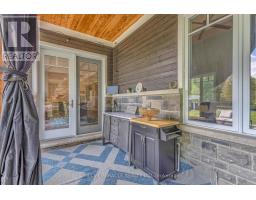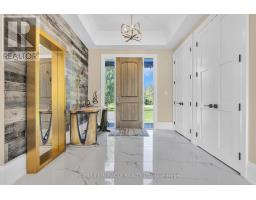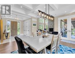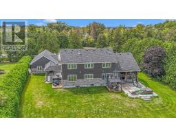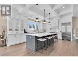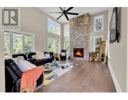 Modern farmhouse bathing in natural light, backing onto a creek and set on a picturesque 1-acre lot, offering privacy, natural beauty, and a cottage-like lifestyle just outside your door. Offering privacy within minutes to Highway 401, Guelph, and Cambridge amenities. This 6-year-old custom-built home will impress every member of the family, featuring a triple detached garage with covered breezeway and a massive heated 665 sq ft workshop. You are welcomed by a grand foyer and a bright open-concept main floor filled with natural light and expansive windows, showcasing high-end finishes including coffered ceilings, pot lights, modern black hardware, floor-to-ceiling kitchen cabinetry, a large quartz island with matching backsplash, and a spacious dining area opening to a stamped concrete covered patio, deck, and hot tub. The impressive two-storey family room with stone fireplace creates a warm and inviting space ideal for entertaining. The main floor also includes a convenient office/4th bedroom, laundry, and ample storage. Upstairs offers three generous bedrooms, including a luxurious primary suite with fireplace, walk-in closet, and 5-piece ensuite. The finished lower level provides additional living space for recreation or relaxation, along with a bedroom with walk-in closet and an additional room with walk-in closet. Located close to Aberfoyle GO Station, schools with bus pickup at the driveway, and surrounded by nature, this property offers a rare opportunity to enjoy a peaceful, elevated lifestyle away from city noise while still being connected to everything you need.https://www.youtube.com/watch?v=P1L4BrJTBYg (id:61594)
