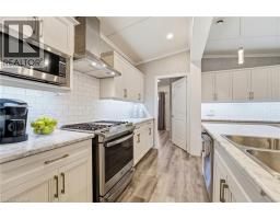 Discover one of Burlingtons best kept secrets, Lost Forest Park. An exclusive, gated community offering a truly unique, low maintenance lifestyle tailored for the most discerning buyers. Surrounded by nature and designed for privacy and comfort, this is a rare opportunity to experience refined living in a serene setting. This is the model you have been waiting for, showcasing a spacious, bright, open concept layout complimented by elegant finishes throughout. The designer like kitchen is crafted for entertaining and definitely the heart of the home. Featuring a 10 foot island, abundant and well appointed white cabinetry, stainless steel appliances, pendant lighting and a tasteful backsplash. This rare floor plan offers ample space for dining and gathering alike. Thoughtfully designed, offering two bedrooms, each with its own private ensuite. One bedroom provides in-law potential, complete with sitting room, sink, fridge and private bathroom. Completing the space an in-suite laundry room. Indulge on the expansive porch, a retreat perfect for savouring peaceful mornings or unwinding in the evening. Lost Forest Park presents a rare blend of tranquility and community in a resort inspired setting. Residents enjoy access to thoughtfully curated amenities including a seasonal pool, horseshoe pits, a community centre with activities and meticulously maintained grounds. Designed for comfort and ease, this enclave the opportunity to downsize gracefully or embrace a more maintenance free lifestyle. Conveniently located in North Burlington, minutes from Waterdown, shopping, trails, golf and highway access. (id:61594)