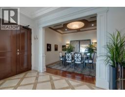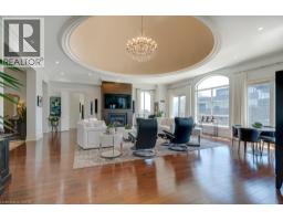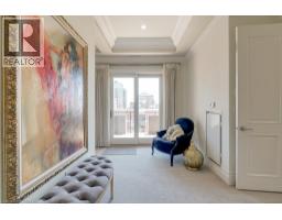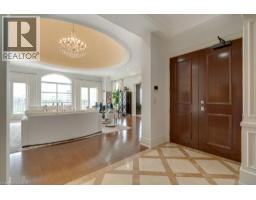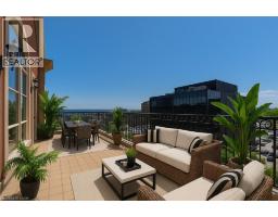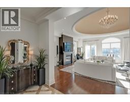 UNCOMPROMISING LUXURY IN DOWNTOWN BURLINGTON - This one-of-a-kind penthouse in an exclusive 13-suite boutique condominium offers 3,017 sq ft of refined living, with four private terraces - each showcasing panoramic views of Lake Ontario and downtown Burlington. Flooded with natural light, the residence features soaring 11-ft ceilings, hardwood and marble floors, and an integrated Bang & Olufsen sound system throughout. Enter through grand double doors into a marble foyer that opens into a spectacular Great Room with a dramatic 21-ft domed ceiling, crystal chandelier, gas fireplace, and walkout to a stunning 30' x 9' terrace. The chefs kitchen is appointed with built-in Miele appliances, custom cabinetry, and island seating, with direct access to a terrace equipped with a natural gas BBQ. A separate formal dining room with elegant chandelier and detailed ceiling mouldings enhances the condos timeless appeal. The first bedroom includes a walk-in closet, 2-piece ensuite, intricate ceiling mouldings, and access to a private terrace ideal as a guest suite, lounge, or office. Down the hall, a second bedroom features a statement chandelier, adjacent laundry room, and access to a designer 4-piece bath with soaker tub. The primary suite is a serene retreat, offering dual walk-in closets, a spa-inspired bath with oversized glass shower and private water closet, a lounge nook perfect for reading or working, and its own private terrace. Includes 2 underground parking spaces and a storage locker. An exceptional alternative to a large home - ideal for those seeking space, privacy, and refined urban living. Just steps to fine dining, boutique shopping, the Performing Arts Centre, Spencer Smith Park, and close to the QEW, 403, 407, and GO. NOTE: Dogs are not permitted. (id:61594)