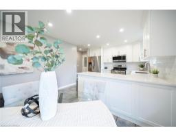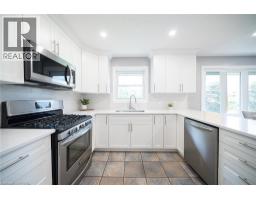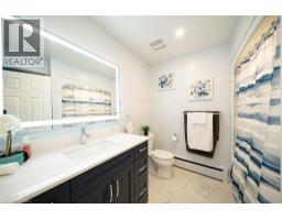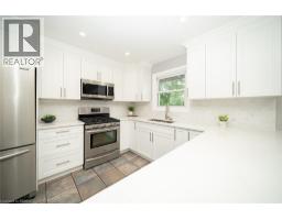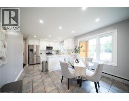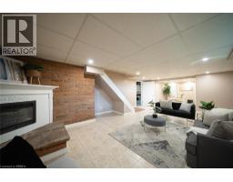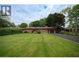 Welcome home to 445 Powerline Road, a handsome bungalow nestled on a deep 185’ ft lot in Brantford’s highly sought after North end. This tidy home includes a full brick exterior, ample parking with a double-wide driveway, and a oversized single-car garage. This 3 bedroom, 2 full bathroom home has 1,410 sq ft of above grade space, plus an additional 430 sq ft of finished living space in the basement. The main floor design showcases a mix of tile & newer engineered hardwood flooring (2023) throughout the living room, hallways, kitchen & dining space. The living room has a large window providing plenty of natural light while the kitchen & dining room have recessed LED lighting with a bright open design making an excellent space for everyday living. The new custom Salt & Pepper kitchen (2023) has quartz counters, crown molding, recessed LED lighting and stainless steel appliances that include an over-the-range microwave and built-in dishwasher. A back door accessing the rear yard can be found here. The main floor is complete with 3 bedrooms that include the primary bedroom accompanied by a 3pc ensuite, and a 4pc bathroom with recently updated cabinetry, a quartz countertop, an LED smart mirror and built-in bluetooth speaker. Both bathrooms feature heated porcelain floors. The basement has a large recreation room and features an attractive gas fireplace. The basement is complete with a laundry room, workshop and an additional room suitable for a home office. Walk-up from the basement to the fully fenced green backyard. This feature allows for multi generational living or a potential income suite opportunity. In addition the backyard has a large raised wood patio, a motorized awning and BBQ gas hookup. Enjoy the warmer months in the sun or under the shade while gathering with friends & family. Located in one of Brantford’s favourite family friendly neighbourhoods, this lovely home is close to excellent schools, parks, shopping and highway access. (id:61594)