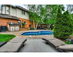 Prestige, Luxury, and Lifestyle in Ancaster's Most Coveted Enclave. Set in one of Ancaster's most sought-after neighbourhoods - just steps from the iconic Hamilton Golf & Country Club - this freshly reimagined residence offers nearly 4,000 sq. ft. of refined living space where timeless design meets everyday comfort.The professionally designed chefs kitchen ('22) is the showpiece of the home: custom full-height shaker cabinetry with glass-lit accents, quartz counters, a charcoal island with brushed bronze fixtures, gas cooktop with pot filler, farmhouse sink, custom range hood, and herringbone style backsplash. Wide-plank hardwood floors and designer lighting complete this entertainer's dream. Main-floor highlights include a bright executive home office, elegant wainscoting, and an inviting flow that balances open concept with defined living spaces. Upstairs, four spacious bedrooms provide plenty of room to grow, while the primary suite feels like a boutique hotel retreat: Moroccan-inspired marble tile, walk-in glass shower, and dual vanities ('20). The fully finished lower level adds flexibility, with a 5th bedroom, full bath, and generous rec space - perfect for guests, in-laws, or an independent teen. Step outdoors and discover a backyard built for memory-making: a sparkling saltwater pool with a brand-new liner ('25), built-in play structure, and a fully fenced yard that offers both privacy and peace of mind. Families will appreciate proximity to top-ranked public and Catholic schools, with extracurricular programs, parks, and trails nearby - making this not just a home, but a foundation for a connected, active lifestyle. This is more than a house. It's an Ancaster lifestyle statement - design-driven, family-forward, and move-in ready in one of the city's most prestigious enclaves. (id:61594)