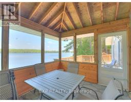 44E Deep Bay Rd - In unorganized township. Cozy 3-bedroom, 1-bathroom four-season fully furnished cottage on the serene shores of popular Memesagamesing Lake! This charming retreat offers over 900 sq. ft. of rustic comfort with a beautiful pine interior, perfect for year-round getaways. Nestled amidst towering pines, the cottage features a warm living area with a wood-burning fireplace, a functional kitchen, and stunning lake views from the screened-in porch and large wrap around deck. Accessible by car in warmer months and by snowmobile in winter, this idyllic property is ideal for outdoor enthusiasts seeking fishing, boating, and snow-filled adventures. This lakeside gem is your perfect escape from the city. (id:61594)