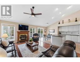 Welcome to this beautifully maintained bungalow situated on an oversized corner lot, offering exceptional privacy and stunning, mature landscaping. This thoughtfully designed home features an open-concept great room and kitchen, highlighted by soaring vaulted ceilings. The kitchen is both stylish and functional, complete with a large island, pot lights and customized lower cabinetry with convenient pull-out drawers-perfect for everyday living and entertaining. The home offers 2+1 bedrooms and 3 full bathrooms, including a spacious primary suite with a cathedral ceiling and a 3-piece ensuite featuring a walk-in shower. The second main floor bedroom is versatile, ideal as a home office or guest room, and includes a built-in Murphy bed for added functionality. Both main floor bathrooms were tastefully renovated in 2022.The professionally finished basement (2019) extends the living space with an additional bedroom, den, a 3-pc bathroom and a generously sized family room with a pool table-perfect for relaxing or entertaining. Ample storage space remains available. This carpet free home features hardwood and ceramic flooring on the main level, with durable luxury plank vinyl flooring throughout the lower level. Step outside to a true gardener's paradise. The private yard is framed by tall hedges and showcases an extensive, low-maintenance perennial garden and landscaping complete with a sprinkler system. Enjoy outdoor living on the deck, with the added convenience of a storage shed and a double car garage. Roof 2015 with 50 yr shingles. (id:61594)