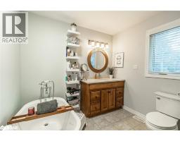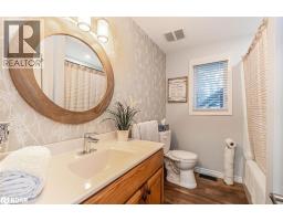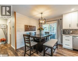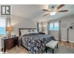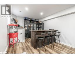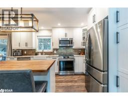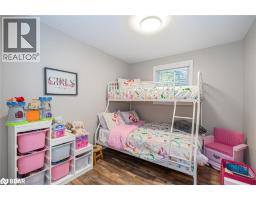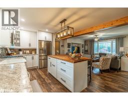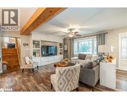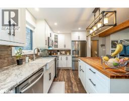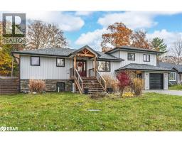 TURN-KEY BUNGALOW WITH ELEGANT FINISHES & IN-LAW SUITE POTENTIAL NEAR GEORGIAN BAY! This impeccably constructed bungalow, built in 2019, is set on a spacious 82 x 189 ft lot, offering 0.36 acres of privacy and natural beauty with mature trees surrounding the property. Designed for both style and function, the open-concept interior is bright and welcoming, showcasing vinyl plank flooring, pot lights, and tasteful neutral finishes throughout. At the heart of the home, the stunning kitchen impresses with stainless steel appliances, a generous butcher-block island, pendant lighting, sleek white cabinetry, an apron-style sink, and a subway tile backsplash. The adjoining dining and living areas are perfect for gatherings, featuring custom built-ins, a shiplap feature wall, and large windows that fill the space with natural light. The spacious primary bedroom is tucked away in a private section of the home, separate from the other bedrooms, and includes a large walk-in closet and an elegant ensuite. The bright lower level offers in-law potential, complete with 8.5-ft ceilings, a walk-up entrance to the garage, a large rec room with a bar area, a bedroom, and a full bathroom. Additional highlights include a fully insulated attached double-car garage with drive-through access, a high-efficiency furnace, and a 200-amp electrical panel for reliable comfort and energy efficiency. Situated near Georgian Bay’s beaches, parks, grocery stores, dining, schools, and outdoor recreational activities, this modern, move-in-ready home offers comfort in a quiet and peaceful location. Don’t miss the chance to make this exceptional property yours! (id:61594)