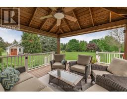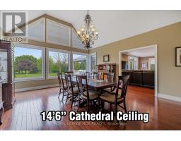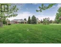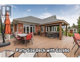 Welcome to a stylish and meticulously maintained 2568sf bungalow with cathedral ceiling grand dining room, approximately 3/4 acre lusciously landscaped private property, 3 car garage and partially finished basement that is nestled in the desirable and prestigious enclave of Ballantrae. It is conveniently located within minutes to Go Train, big box stores, and all amenities. This thoughtfully designed floor plan presents a seamless flow for entertaining that is complimented with spectacular panoramic views of the breathtaking manicured property. The modern kitchen with spacious breakfast area boasts floor to ceiling windows and overlooks the huge great room with fireplace and south facing back yard. The spacious welcoming attractive foyer accesses the striking cathedral ceiling dining room and large main floor office with fireplace. Three of the bedrooms are conveniently located on the main floor in the separate, private east wing. The primary bedroom offers a walk-in closet and 4pc bath with the two additional main floor bedrooms sharing a Jack and Jill ensuite. The mostly finished basement presents an expansive recreational room with seating, games and exercise areas, oversized fourth bedroom with large 3pc bath and lots of potential for further customization. The outdoor area is equally impressive and is highlighted by a spectacular and enormous non-maintenance deck. The south facing outdoor oasis includes a covered gazebo, huge dining area and separate sitting areas and is complemented by expansive views of manicured gardens and lush green trees. Wow a modern bungalow on a large private luscious lot in a prestigious area. A must see! (id:61594)
