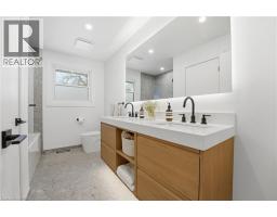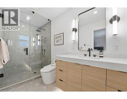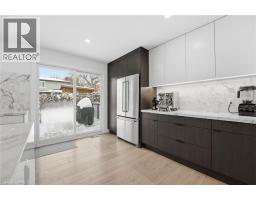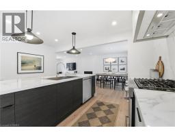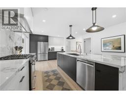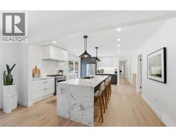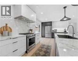 Welcome to this stunningly renovated home in Brantford’s most desirable neighbourhood – Ava Heights. Nestled on prestigious Parkside Drive, this exceptional property offers privacy, luxury, and convenience, all within walking distance to some of the city’s finest amenities. Thoughtfully redesigned with custom designer finishes and professionally curated details, this home showcases quality craftsmanship throughout. The main level features a spectacular 2020 kitchen renovation complete with Downsview custom cabinetry, elegant porcelain countertops, and engineered oak hardwood flooring that flows seamlessly throughout. An impressive new oak staircase adds architectural character, while two gas fireplaces create warm and inviting living spaces. Offering three oversized bedrooms plus a versatile fourth room ideal for a home office or additional bedroom, the layout is both functional and flexible for growing families or professionals working from home. The luxurious primary ensuite (2024) features heated floors and high-end finishes, while the main bathroom was newly completed in 2025. The basement bathroom and laundry were beautifully renovated in 2023, and the separate walk-in basement entrance provides excellent potential for an in-law suite or private guest space. Step outside to enjoy the maintenance-free composite deck (2020). The home’s elevated position from the road and expansive four-car driveway enhance both privacy and curb appeal. An oversized double garage with new doors (2023) add further value and style. Extensive upgrades provide peace of mind: Roof (2019) New A/C (2023 – owned) New Furnace (2024 – owned) Water Softener System (2025). Perfectly located within walking distance to Dufferin Tennis & Pickleball Club, Brantford Golf & Country Club, Glenhyrst Gardens, parks, and the scenic Grand River trails, this is a rare opportunity to own a turn-key luxury home in one of Brantford’s most sought-after communities. Ava Heights living at its finest. (id:61594)