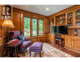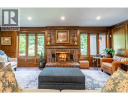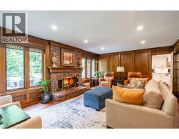 Exceptional Estate in One of Ancaster’s most sought-after Neighbourhoods! Just steps from the prestigious Hamilton Golf & Country Club, this remarkable estate offers over 4000sqft above grade of living space on a generous pie-shaped lot w/ lush landscaping, inground pool & a resort-like bckyrd! The approach alone is unforgettable- you’re greeted by a picturesque streetscape, grand windows & exterior drs (replaced ‘11–‘15), extensive stonework & landscaping (‘14) & an incredible architectural presence. Inside, a stunning dbl staircase (reno’d Spring ‘21) makes an immediate statement. Beneath the staircase, the elegant great rm feat rich oak wainscoting & a gas fp, creating a warm yet sophisticated gathering space. Main flr hdwd ‘21. The kitchen, fully reno’d in ‘21, boasts Cambria quartz countertops & premium Thermador appl. Step outside from the kitch to an extraordinary, bckyrd oasis designed for entertaining! Highlights include two gas fp, multiple outdoor entertaining areas, an impressive L-shaped pool & ample green space for children and pets. Landscaping by Cedar Springs in ‘11. The main lvl also offers a gracious living rm w/ a wood-burning fp, a formal dining rm, a regal office w/ oak detailing and wainscoting, a 2-pc bthrm and a convenient main-flr lndry rm off the grg w/ heated floors. Upstairs, you’ll find 4 generously sized bdrms and 3 full bthrms. The children’s rms share a Jack & Jill bthrm reno'd in 15', while the luxurious primary suite feat his-and-hers w/i closets, a spa-like ensuite reno'd in 15' w/ Cambria Quartz countertops, heated flrs, and an add’l gym or private office. The lower lvl offers exceptional versatility, w/ a spacious bdrm, full kitch w/ granite countertops (‘15), and a reno’d bthrm w/ heated flrs (‘15). With a sep entrance, this lvl is ideal for summer entertaining, pool access, or extended family living. A truly rare offering—private, elegant, and perfectly located—this home delivers timeless design & an unmatched lifestyle. (id:61594)
