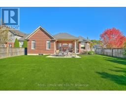 SET UP NICE!! Built by Mabo Westside Construction Ltd., this former Linden model bungalow offers timeless quality, elegant design, and beautiful curb appeal with its combination of brick, stone, and stucco finishes.Featuring an oversized double garage and an impressive 1,200 () sq. ft. covered patio accessible from both the kitchen dinette and the primary bedroom-perfect for entertaining family and friends or simply enjoying a peaceful evening under the stars.With just shy of 2,300 sq. ft. above grade plus approximately 1,000 sq. ft. of finished space below, this home offers versatility and comfort for today's lifestyle.Step inside to soaring 9- and 10-foot ceilings, a welcoming foyer with striking curved wall and wrought-iron railing, and a spacious Great Room featuring a detailed cove ceiling, pot lighting, a centre gas fireplace, and immaculate maple hardwood floors.The chef's kitchen boasts quartz countertops, a tumbled marble backsplash, and a bright dinette overlooking the fully fenced backyard. A formal dining room sets the stage for special gatherings, while a front flex room easily serves as a home office, den, or extra bedroom.Down the hall, discover another generous bedroom, a full 4-piece bath, and the primary retreat tucked privately at the back of the home with a 4-piece ensuite featuring a walk-in glass shower. Main-floor laundry with garage access adds convenience.Downstairs, take the party to the fully finished lower level with in-floor heating, a wet bar with seating for four, a corner gas fireplace, and a projector with automatic 92" screen and 8 built-in speakers-the ultimate entertainment space! A fourth bedroom, 3-piece bath, and three large storage rooms complete this impressive lower level.Rounded corners, quality finishes, and attention to detail throughout make this home truly special-set in one of Fonthill's most desirable neighbourhoods.Who will be the lucky one? (id:61594)