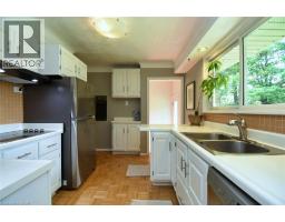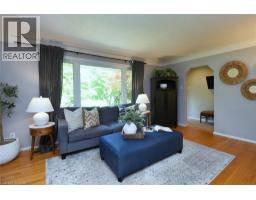 Welcome to this beautifully maintained 3+1 bedroom, 2-bath bungalow nestled in a quiet and sought-after area of Ancaster, just moments from the prestigious Hamilton Golf and Country Club. Enjoy the convenience of nearby parks, shopping and serene surroundings. The professionally landscaped front yard offers exceptional curb appeal with a double-wide interlocking driveway and inviting front porch. Step inside to find gleaming hardwood floors throughout the main level, coffered ceilings, and large bright windows in the living and dining rooms. The kitchen features stainless steel appliances, built-in cooktop and oven. The main bathroom includes a luxurious soaker tub for the ultimate in relaxation. Downstairs, the fully finished lower level has tiled floors, a spacious rec room with a wet bar, a 3-piece bathroom, an additional bedroom, laundry and ample storage. The private backyard is perfect for entertaining, with a large patio and mature landscaping that provides both beauty and seclusion. This is a home you won’t want to miss! (id:61594)