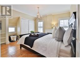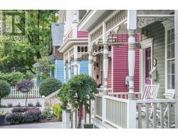Welcome to a truly historic 1890 character home, set on one of downtown Burlington's most admired streets. Part of an iconic group of 4 cottages inspired by the famed "Painted Ladies," this residence offers a rare opportunity to own a piece of history, protected from future redevelopment, yet flexible for modern living. Directly across from Brock Park, and steps to the lake, downtown shops, cafés, and cultural attractions, the lifestyle is unmatched. Spend mornings and evenings in the enclosed front porch, perfect for people-watching and soaking in the neighbourhood. Inside, timeless style meets thoughtful upgrades. Original baseboards and mouldings, antique pine floors, and 9ft ceilings create warmth and authenticity, while modern comforts include central air, updated 100-amp electrical service, and a beautiful custom kitchen w/ heated ceramic floors, new cabinetry, SS appliances, and a seating area overlooking the side yard. The living room features a gas fireplace, and flows into a highly functional flex space - ideal as a home office today, and easily converted to a dining room or guest Bedroom depending on your lifestyle. A mud room w/ stylish glass block accents adds even more appeal. Upstairs, the primary bedroom is a retreat w/ a fireplace, alongside a luxurious bathroom showcasing Victorian-style fixtures, heated floors w/ custom inlays, plus an additional bedroom perfect for family or guests. Out back, enjoy a private, landscaped outdoor oasis with a large deck, BBQ gas line, spacious partially fenced yard, and custom shed-delivering a cottage-like feel just steps from the lake. The location shines year-round: daily walks along the waterfront, winter skating nearby, and festivals right down the street, complete with two prime parking spots for hosting. A rare blend of heritage, lifestyle, and modern comfort-ideal for growing families, professionals working from home, or anyone drawn to distinctive character living in the heart of downtown Burlington. (id:61594)