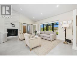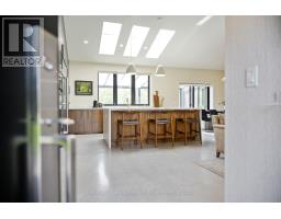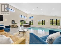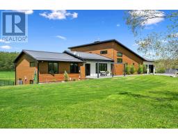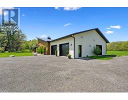 Set on a sprawling 23-acre estate, this striking modern residence exemplifies the perfect balance between contemporary elegance and rural serenity. Every detail has been thoughtfully curated, blending sleek architectural design with high-performance construction, including efficient ICF walls and radiant heated concrete flooring. Step into a grand, open-concept living area defined by cathedral ceilings and a dramatic wall of windows. A double-sided Napoleon propane fireplace anchors the space, connecting the living room to a sophisticated dining area adorned with modern lighting and walkout to the second-level deck ideal for outdoor entertaining. Sunlight pours into the kitchen through oversized windows and skylights, offering breathtaking views of the rolling countryside beyond and showcasing top-tier Jenn-Air appliances, striking Dekton countertops and a waterfall island with a breakfast bar. Resort-style living awaits in the private attached oasis. A 14x24 heated indoor saltwater pool, soaring 20-foot ceilings, expansive windows, a hot tub, and space for a lounge or home gym create an oasis-like experience, ideal for year-round relaxation and entertaining. The primary suite is a tranquil retreat featuring a walk-in closet and spa-inspired ensuite with dual vanity, freestanding soaker tub, and glass shower enclosure with steam shower. An additional bedroom and two bathrooms round out the level. The finished lower level adds flexible living space, including a sprawling bedroom suite with sitting area, semi-ensuite bath, and walkout to a covered patio. A massive recreation room with a walk-in closet offers potential for a future fourth bedroom. Enjoy a lower covered patio area, fenced yard, and firepit area, perfect for summer nights under the stars. Additional highlights include a radiant heated 4-car garage and a 16x24 barn for versatile use. This one-of-a-kind property is the pinnacle of modern rural luxury. Just under 15 minutes to Cobourg and Highway 401. (id:61594)