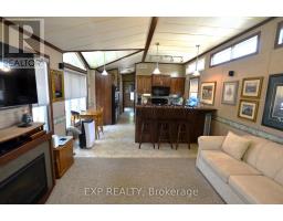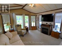 Experience maintenance free living in the retirement community of Oriole Park. Enjoy your morning coffee on the covered back deck overlooking the beautiful landscaped grounds. This well-maintained home features an open concept floor plan with cathedral ceilings, kitchen with breakfast bar and gas stove, spacious living room with electric fireplace and patio doors to deck. Brand new roof! All appliances included. The master bedroom includes built in mirrored closets and drawers. Laundry room with plenty of storage. Forced air heating and portable AC unit included as well. Concrete driveway plus storage shed and additional storage under deck. Ample guest parking on site. Low property taxes! This is a fantastic opportunity for quality retirement living in a 55+ community with incredible amenities including an inground pool, pickle ball court, community centre, dog grooming, golf simulator, bistro & bar, pool table, dart board, and more. Schedule your retirement today! (id:61594)