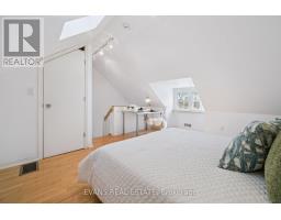 Nestled within the neighbourhood of Wychwood Park, offering a rare opportunity to live in one of Toronto's most coveted and picturesque communities. This charming 2.5 storey detached home blends timeless character with everyday comfort, featuring bright, high ceilings, pot lighting, skylights well-proportioned rooms, and a warm and functional layout. The main floor also features a wood-burning fireplace and an inviting eat-in kitchen with a skylight and walk-out to a generous deck overlooking a lovely garden. The second level offers two bright rooms and a family bath, while the third-floor loft provides a private, sun-filled primary retreat with walk-in closet. Step outside to a private, picturesque front porch or a backyard-ideal for peaceful evenings surrounded by nature. Laneway access adds the convenience of two car parking. Set on a tranquil, tree-canopied street just moments to the Wychwood Barns, trails, parks, schools, TTC, and the vibrant shops and cafés of St. Clair West, this is a truly special offering-where city living meets village-like charm. (id:61594)