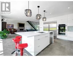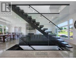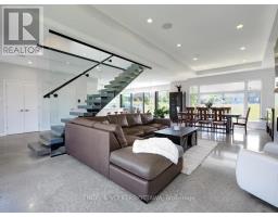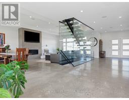 Welcome to this exceptional custom-built, automated home, crafted with precision and modern elegance. A striking centrepiece of this property is the stunning centre staircase with glass walls, complemented by sleek concrete floors and a beautiful natural gas fireplace that adds both warmth and style to the open-concept living space.This home is flooded with natural light, thanks to its southern exposure, floor-toceiling windows, and two oversized 5-foot patio doors. These doors open up to an expansive composite deck, offering the perfect space for entertaining or simply enjoying the outdoors.The gourmet kitchen is a true delight, featuring high-end stainless steel appliances, quartz countertops, and a spacious centre island with a built-in sink. Elegant pendant lighting adds extra flair, while the wine fridge, which holds 140+ bottles, ensures youre always ready to entertain in style.The cozy living room, complete with a fireplace, offers a perfect retreat, while the adjacent dining area comfortably accommodates a large table. The homes cutting-edge Control 4 automation system lets you easily adjust lighting and music, with compatibility for Apple, Google, Spotify, and more. *Ipad required. Lutron switches and pot lights throughout create the ideal ambiance.The primary suite is a luxurious escape, offering a spa-like ensuite with dual rain showers, massaging jets, a separate soaker tub, and double sinks. The expansive walk-in closet and beauty station complete the indulgent retreat. Second bedroom feature a large closet and ensuite bathrooms, while two additional bedrooms offers ample storage and natural light.The upstairs laundry featuring retractable doors and a nat gas dryer. The large, sun-filled basement provides possibilities for a gym, office, or rec room.The fully insulated two-door garage a natural gas heater and high enough for a car lift, while the driveway offers parking for six vehicles. Irrigation system for lawn (id:61594)