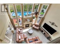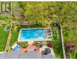 Custom-Built Luxury Home | Original Owner | Ravine Lot | Gate Way to wine country Welcome to this stunning custom-built luxury residence offering just under 5,000 SF of living space, meticulously maintained by the original owner and ideally situated on a premium ravine lot with breathtaking panoramic views of Lake Ontario. The main floor features foyer, elegant living and dining rooms, and a cozy family room with a gas fireplace and den/office. The gourmet kitchen boasts Jenn-Air appliances, a walk-in butler’s pantry, built-in coffee station, granite countertops and walkout to a backyard oasis. Enjoy outdoor living with professionally landscaped front and rear yards, with a two-tier deck, hot tub, sitting area, fire pit and a 20x40 inground saltwater pool—perfect for entertaining. A convenient laundry/mudroom with garage access and a 2-piece bath complete the main level. Upstairs, you'll find a luxurious primary suite with a 6-piece ensuite and walk-in closet. The second and third bedrooms share a stylish Jack & Jill 4-piece bath, while the fourth bedroom has access to a 3-piece bathroom. The finished basement offers exceptional additional living space with 9-foot ceilings, spray foam insulation, two bedrooms, a 3-piece bathroom, and a large recreational room with an electric fireplace—ideal for guests or extended family. Pool 2019, Furnace & A/C 2018 Truly a rare opportunity to own a one-of-a-kind home that blends luxury, privacy, and captivating views. (id:61594)