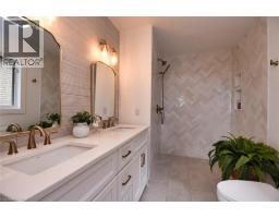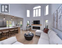 This custom luxury home offers the perfect blend of refined design, high-end finishes, and thoughtful functionality—ideal for the discerning family seeking comfort, elegance, and space. Designed for both everyday living and entertaining, it sits on an ultra-premium extra large lot with peaceful views of the Greenbelt and surrounding farm fields. Located in an exclusive private enclave of upscale, custom-built homes, this is a rare opportunity to own in one of Winona’s most sought-after neighborhoods, where homes rarely become available. This meticulously newly upgraded home blends high-end finishes with thoughtful design. The chef’s kitchen is a standout, featuring custom ceiling-height cabinetry, a 10’ custom white oak island, quartz counters, and $75,000 in new Thermador appliances. A beverage centre, Brizo faucets, Blanco sinks, and a custom fan hood add luxury and function. Walk out to the deck and enjoy views of the Niagara Escarpment. The main living area boasts 19’ ceilings, a window wall, and a gas fireplace with custom millwork. A formal dining room, upgraded mud/laundry room, and a flexible office/bedroom complete the main level. Upstairs, the vaulted master retreat offers Greenbelt views, a spa-like ensuite with heated floors, and a walk-in closet. Additional bedrooms and a versatile loft add space and flexibility. Enjoy premium finishes throughout: wide plank engineered hardwood, Benjamin Moore paint, custom lighting, and upgraded baths. Outside, the pool-sized yard, or room for an ADU, composite deck, and aggregate driveway and walkways add luxe curb appeal. Enjoy walking to parks, shops, and enjoying unmatched privacy and natural beauty. (id:61594)