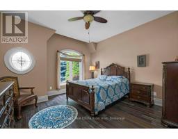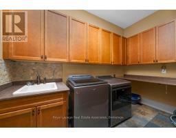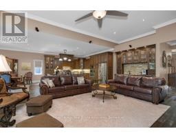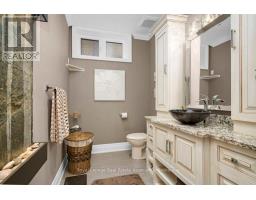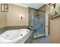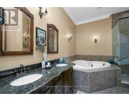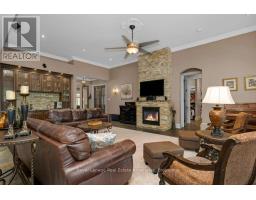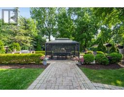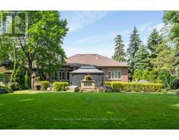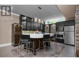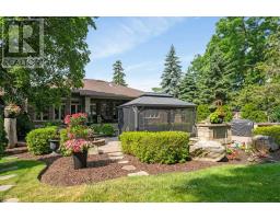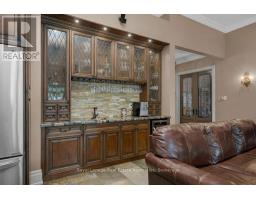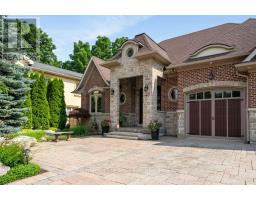 Welcome to 46 Scott Street a truly exceptional custom bungalow designed with care, craftsmanship, and every detail thoughtfully considered. The open-concept main floor features a stunning chefs kitchen with granite island, double sink, two ovens, 5-burner gas range, pasta pot filler, water filtration, pot lights, built-in speakers, and wine fridge all flowing into a spacious great room with 12' ceilings, stone gas fireplace, surround sound, and custom blinds. The dining area opens directly to your private backyard oasis. The primary suite is a true retreat with a luxurious 5-piece ensuite: Jacuzzi tub, large shower with rain head and body sprays, crystal chandelier, electric fireplace, walk-in closet, and custom built-ins. A generous office, second bedroom, and large laundry room with sink, stone backsplash, folding table, and ample storage complete the main floor. Enjoy the quiet of solid 8' soundproof doors and 10" walls throughout. The fully finished basement features 9' ceilings, heated floors, custom oak kitchen with Corian island, top-quality appliances, rec room with two-sided stone gas fireplace, games area, two large bedrooms, and a spa-like 3-piece bathroom with steam sauna, rain shower, body sprays, and light-up wall fountain. Also includes 2 soundproof studio rooms and 2 cold storage areas. The oversized garage is ideal for car enthusiasts, offering lift height, custom shelving, inside access, two garage door openers, and finished walls. The backyard offers privacy with mature trees, irrigation system, 12x12 gazebo, gas BBQ hookup, shed, covered porch, and a peaceful stone waterfall. Additional features: 2x6 construction, stone and brick exterior, high-efficiency furnace, RO system, water softener, on-demand water heater with backup tank, security system, dimmable lighting, two staircases, and expansive windows overlooking landscaped gardens. This one-of-a-kind home is a must-see built with top-tier quality, comfort, and timeless style. (id:61594)