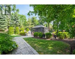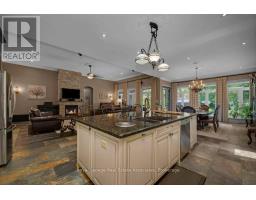 Welcome to 46 Scott Street a truly exceptional custom bungalow designed with care, craftsmanship, and every detail thoughtfully considered. The open-concept main floor features a stunning chefs kitchen with granite island, double sink, two ovens, 5-burner gas range, pasta pot filler, water filtration, pot lights, built-in speakers, and wine fridge all flowing into a spacious great room with 12' ceilings, stone gas fireplace, surround sound, and custom blinds. The dining area opens directly to your private backyard oasis. The primary suite is a true retreat with a luxurious 5-piece ensuite: Jacuzzi tub, large shower with rain head and body sprays, crystal chandelier, electric fireplace, walk-in closet, and custom built-ins. A generous office, second bedroom, and large laundry room with sink, stone backsplash, folding table, and ample storage complete the main floor. Enjoy the quiet of solid 8' soundproof doors and 10" walls throughout. The fully finished basement features 9' ceilings, heated floors, custom oak kitchen with Corian island, top-quality appliances, rec room with two-sided stone gas fireplace, games area, two large bedrooms, and a spa-like 3-piece bathroom with steam sauna, rain shower, body sprays, and light-up wall fountain. Also includes 2 soundproof studio rooms and 2 cold storage areas. The oversized garage is ideal for car enthusiasts, offering lift height, custom shelving, inside access, two garage door openers, and finished walls. The backyard offers privacy with mature trees, irrigation system, 12x12 gazebo, gas BBQ hookup, shed, covered porch, and a peaceful stone waterfall. Additional features: 2x6 construction, stone and brick exterior, high-efficiency furnace, RO system, water softener, on-demand water heater with backup tank, security system, dimmable lighting, two staircases, and expansive windows overlooking landscaped gardens. This one-of-a-kind home is a must-see built with top-tier quality, comfort, and timeless style. (id:61594)