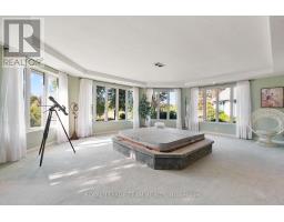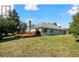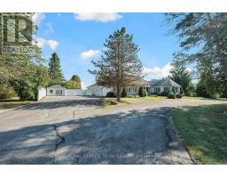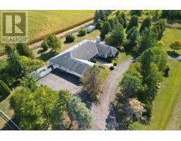 Tucked away on over 18 acres of tree tranquility, this sprawling brick bungalow is more than a home, it's a lifestyle. A grand circular driveway and wide covered porch framed by elegant hip rooflines welcome you into timeless elegance and everyday comfort. The foyer opens to an open-concept layout. The chef's kitchen boasts rich wood cabinetry, granite counters, a spacious island with extended bartop seating, and built-in stainless steel appliances including wall oven, gas cooktop, and integrated barista station. A sunlit window over the sink frames peaceful country views. Tile flows into the kitchen while hardwood with custom inlay defines the expansive great room with custom built-ins and cozy fireplace. Patio doors from the great room & dining room open to a glorious sunroom drenched in natural light, with access to a large deck for seamless indoor-outdoor living. A spa-like retreat with hot tub offers panoramic views of your treed oasis. The main level includes 2 generous bedrooms, highlighted by a luxurious primary suite with walk-in closet, fireplace, spa-inspired ensuite with dual sinks and custom shower, plus private deck access. A second 4-pce bath, dedicated laundry, and wide hallways complete this level. The fully finished lower level expands your options with a rec/games room and fireplace, gym, wet bar, home theatre, den/bedroom, cold storage, 3-pce bath, and workshop/hobby space. The opposite wing hosts 2 private 1-bedroom in-law suites, each with living room, kitchen, 4-pce bath, private side-door entry, shared foyer, and laundry, ideal for extended family, guests, or income. Outdoor living shines with 2 decks, a large covered porch, and a 3-car garage with inside access to both levels. Peace of mind comes with a whole-home generator 2023, geothermal heating/cooling, fibre internet, and 4 fireplaces. The treed acreage invites endless possibilities: create your own walking trails, enjoy snowshoeing or skiing, ride horseback, or cultivate a hobby farm. (id:61594)