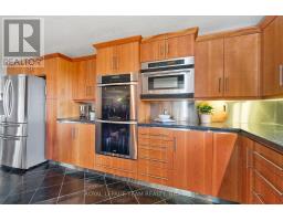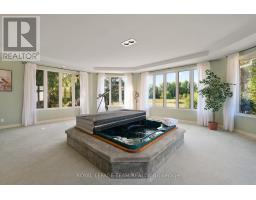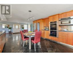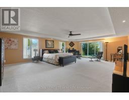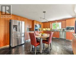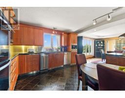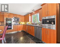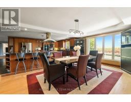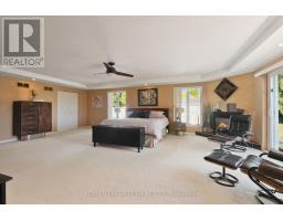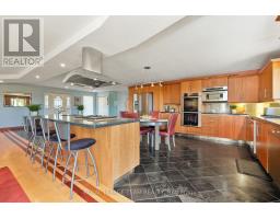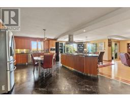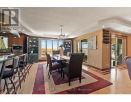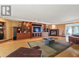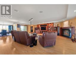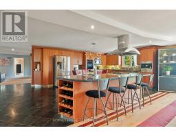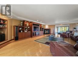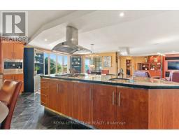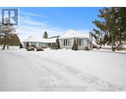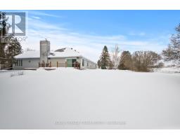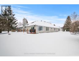 Nestled on more than 18 acres of serene woodland, this expansive brick bungalow offers far more than a residence-it delivers a refined country lifestyle. A stately circular drive & covered porch, accented by graceful hip rooflines, set the tone for classic style. Inside, the welcoming foyer flows into a bright open-concept design. The gourmet kitchen features warm wood cabinetry, granite counters, a large island w/extended breakfast bar, & built-in stainless appliances; wall oven, gas cooktop, and a dedicated barista station. A sun-filled window above the sink captures calming rural views. Tile continues through the kitchen, while hardwood with custom inlay defines the oversized great room, complete with built-ins and an inviting FPL. Garden doors from both the great room & dining area lead to a stunning sunroom bathed in light, opening onto a generous deck for effortless indoor-outdoor living. A spa-style hot tub retreat showcases sweeping views of nature. The main floor hosts 2 spacious bedrms, led by an elegant primary suite w/WIC, fireplace, spa-inspired ensuite w/double vanity & custom shower, and private deck access. A second 4-pce bath, laundry, and wide corridors complete the level. Downstairs, the fully finished lower level offers exceptional flexibility with a recreation and games room + FLP, fitness area, wet bar, home theatre, den/bed, cold storage, 3-pce bath, & hobby room. The opposite wing features 2 self-contained one-bed in-law suites, each with living rm, kitchen, 4-pce bath, private side entrance, shared foyer, & laundry-ideal for multigenerational living, guests, or rental potential. Outdoor amenities include 2 decks, a spacious covered porch, and a 3-car garage w/interior access to both levels. Added value: 2023 whole-home generator, geothermal heating & cooling, fibre internet, & 4 fireplaces. The forested acreage inspires endless opportunities - trails, snowshoeing or skiing, equestrian centre, or creating a hobby farm in Ashton, min to Hwy 7. (id:61594)