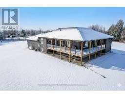Outstanding. With smooth clean lines this 2022 home offers a sophisticated presence and, its unparalleled construction creates a wealth of efficiencies. The exterior steel siding is eye catching with its attractive slate-hued finish, accented by earthy warm cedar. The design elements blend flawlessly into 3 peaceful country acres. Step inside to the sleek foyer featuring white bright décor enhanced by double closet's charcoal glass panels; elegance added by the porcelain floor and glass chandelier. Flooring thru-out 3+1 bed, 2 full bath home is porcelain tile plus, luxury vinyl plank with cork cushioning for sound absorption - you will appreciate this with every step. Ceilings 9' high, light cascades inside thru big windows and living spaces insulated for sound separation from the bedrooms. Livingroom linear propane fireplace is surrounded by showcase porcelain wall. Impeccable gourmet kitchen most welcoming with Cambria quartz countertops, custom Deslaurier cabinetry, generous breakfast bar and premium Bosch appliances including two built-in ovens. Adjoining butler's pantry and sitting area. Primary suite calming retreat with two large closets and luxurious 5-pc ensuite porcelain floor, two-sink quartz vanity, rainhead glass shower with body-spray tower and deluxe soaker tub. Two more bedrooms and well-appointed 4-pc bathroom also with porcelain floor, quartz vanity, touchscreen mirror and rainhead shower with body-spray. Lower level 8' ceilings, R22 insulation and potential for in-law suite with rough-ins for kitchen and bathroom. From lower level, direct access to double attached garage with hookup for overhead propane heater. Adding to home's ultra-modern design and commitment to quality is superior steel roof with protective membrane & R60 insulation. Steel fascia has recessed soffit lighting. High energy-efficient Kohltech windows & propane furnace. Underground hydro line from road to home. On paved township road. Cell service & hi-speed. 10 mins Perth. (id:61594)