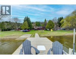 Lakefront log cabin, with poured concrete foundation, on a rare flat lot. Over $40,000 invested in the kitchen and stainless steel-framed dock. Features two full baths, main floor laundry, EV plug-in, and propane generator. Covered porch with lake views. Effortless lakefront living at Conestogo Lake with this 1,466 sq ft log cabin cottage, where rustic charm meets modern convenience. Fully updated and thoughtfully designed, this cottage offers a rare attached garage with direct access inside providing a convenient entrance. Take in the scenery from the covered porch that stretches the full length of the cottage, or gather on the spacious deck, the perfect setting for meals and entertaining with unobstructed views. The brand-new $18,000 aluminum frame dock provides a launchpad for swimming, boating, and all things summer. Inside, find a fully updated kitchen offers an ideal space for cooking meals. Outfitted with modern appliances, including a range hood oven, French door fridge, and a central island, it’s designed for both functionality and style. Share family meals in the adjoining dining area, cozy up by the wood-burning stove with direct lake views, or catch a movie in the second living space just off the dining room. Upstairs, 3 inviting bedrooms and a spacious 4pc bathroom features a built-in electric fireplace and dual sinks. The primary bedroom boasts stunning views of the water beyond. Practical perks include in-cottage laundry, an electric vehicle plug-in in the attached garage, and a generator to keep life humming along. Outside, gather around the fire pit on starry nights, perfect for roasting marshmallows, sharing stories, and making memories that will last a lifetime. With year round road access, thoughtful upgrades, and direct waterfront bliss, this is more than just a cottage, it’s your next chapter at Conestogo Lake, ready and waiting for new memories to be made. (id:61594)