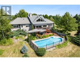 Your Private Riverside Retreat - A Four-Season Waterfront Sanctuary - Welcome to this exceptional architect-designed home offering total privacy and approximately 950 ft of waterfront along the UNESCO Rideau Canal. Set on 12+ peaceful acres just minutes from Merrickville and only 40 minutes to Ottawa, this private riverside retreat blends luxury, functionality, and year-round enjoyment in a truly unforgettable setting. Soaring ceilings, sun-filled spaces, and a dramatic two-story stone fireplace anchor the open-concept living area, creating a warm yet impressive focal point. The gleaming white kitchen is both elegant and practical-perfect for entertaining or everyday living with views of the surrounding landscape. The main level features spacious principal and guest bedrooms, each with its own ensuite, plus a bright loft overlooking the river and rolling fields beyond. The finished walkout lower level is designed for comfort and recreation, complete with heated floors, a wood stove, a large rec area, an additional bedroom, a powder room, sauna, and a convenient shower room just steps from the saltwater pool-ideal after a swim, skate, or day on the trails.curated perennial gardens, blooming apple trees, and vibrant seasonal colour surround the home. Relax on the dock, fish the Rideau, kayak at sunrise, or enjoy winter skiing and skating before warming up in the sauna. True four-season living in a peaceful natural setting. Additional highlights include copper plumbing, a wide poured concrete foundation, exceptional insulation, architectural plans, extra-wide halls for accessibility, a 3-season sunroom, a detached drive-through garage, custom copper eavestroughs, roughed-in central vac, an emergency generator, ample storage, and plugs for holiday lighting. A rare opportunity embracing your dream lifestyle-this private riverside retreat offers tranquility in nature just minutes from Merrickville, close to Hwy 416, and in easy reach of Ottawa. (id:61594)