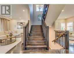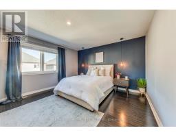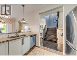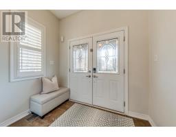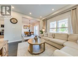 Welcome to this beautifully upgraded semi-detached home in Burlington's highly sought-after Alton Village-offering a perfect blend of modern style, functional layout, and move-in-ready comfort.Step inside to a bright and inviting main floor featuring 9-ft ceilings, rich hardwood flooring, and bright pot lighting. The open-concept living and dining area flows seamlessly into a spacious family room, creating an ideal setting for both everyday living and entertaining. The renovated kitchen (2020) is a standout, showcasing white cabinetry, granite countertops, modern backsplash, and expanded prep space, with a cozy breakfast area overlooking the backyard. Upstairs, you will find three generously sized bedrooms, including a spacious primary retreat complete with a walk-in closet with custom built-in cabinetry and private ensuite. Two additional bedrooms share a well-appointed main bath, while the convenient second-floor laundry room adds everyday practicality.The fully finished basement (freshly painted in 2026) offers excellent additional living space, including a large rec room, dedicated office (or potential 4th bedroom), and ample storage-perfect for growing families or those working from home.Exterior features include interlock landscaping in the front and backyard, a large low-maintenance yard, and a freshly stained deck (2025), ideal for outdoor entertaining.Additional upgrades include: solid oak staircase, upgraded bathroom vanities with granite counters, pot lights (2019), main floor repaint (2024), smart Ecobee thermostat, and updated fixtures throughout.Located close to top-rated schools, parks, shopping, and all amenities, this home offers exceptional value in one of Burlington's most desirable family-friendly communities. (id:61594)