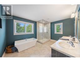 This property delivers what others don't: upgrades in every room and no neighbours behind you. This 4-bedroom, 4-bathroom home is a rare find in Arthur- fully upgraded and backing onto greenery for total backyard privacy. Inside you'll find oak hardwood floors, 9-ft ceilings, and a modern kitchen with quartz counters and stainless-steel appliances. Every bedroom has its own bathroom, including two spa-inspired primaries with freestanding soaker tubs and frameless glass showers. Upgrades throughout include central A/C (not found in many nearby homes), oak stairs with metal balusters, designer paint, upgraded trim, and full-glass double entry doors. The garage is finished with epoxy floors and EV rough-in for an electric car charger, while the extra-wide driveway fits 4 cars. With thoughtful upgrades, a premium lot, and a private green backdrop, this home truly offers more than the average property in the neighbourhood. In Arthur, you'll love the small-town charm, local shops and parks, and the quick access to cottage country for weekend getaways. (id:61594)