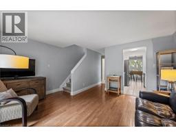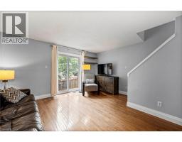 This beautifully maintained 2-storey end unit townhome is located in sought-after Riverpark Village community. Perfect for first-time buyer, a young family, an investor or down-sizing! It’s move-in ready and has it all. Carpet-free with hardwood, ceramic tile and laminate. New trim & doors. Custom shutters and blinds The kitchen is fully equipped with stainless appliances, updated white cabinetry and quartz countertop. Adjacent is the cozy dining area, perfect for enjoying meals with loved ones. The living room leads outside to your own private backyard oasis featuring a deck, partial fencing & access to mature green space with many trees. It’s just perfect for summer BBQs or evening relaxation. The adjacent playground is perfect for young children! Upstairs are 2 generously sized bedrooms, each with picturesque views from the windows. The primary bedroom includes his-and-her closets, while the 4pc shared bathroom features a shower/tub combo. The fully finished basement has recroom that can also be used as a playroom, home gym or media space. There is also a 2pc bathroom, laundry & ample storage space. Nestled in a serene, family-friendly complex, this home offers unmatched access to everyday essentials. Close to RIM, Bechtel and Kiwanis parks, recreation facilities, walking/biking trails, Conestoga mall, Kaufman flats, the Grand River, groceries, schools, public transportation and major transit routes. (id:61594)