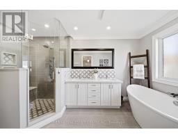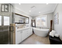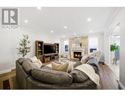 Nestled in family-friendly Alton Village, this meticulously renovated home offers the perfect blend of style, comfort and convenience--steps to top-rated schools, parks and all amenities. The front exterior boasts exceptional curb appeal, highlighted by a charming balcony and inviting alcove entrance. Step through double doors into a welcoming foyer. Thoughtfully curated upgrades are showcased throughout, rich hardwood floors, stunning staircase w wrought iron spindles, pot lights, shutters, updated light fixtures, crown moulding and custom closets. The heart of the home is the beautifully redesigned kitchen, featuring a large quartz island with seating, SS appliances, double ovens, wine fridge and seamless access to the backyard deck--ideal for effortless indoor-outdoor entertaining. The kitchen opens to a warm and inviting family room anchored by a gas fireplace with custom surround. A separate dining room with 3 arched windows provides an elegant setting for hosting. Convenient main-level laundry completes this level. Upstairs, you'll find 4 spacious bedrooms filled with light. The primary suite is a true retreat, offering a walk-in closet and renovated ensuite with a deep soaker tub and glass shower. The main bathroom has also been tastefully updated. Finished lower level expands your living space with a large open-concept recreation room, office area, gym zone, and stylish barn door leading to generous storage. Step outside to your private backyard oasis featuring a saltwater fibreglass pool (lifetime warranty), composite deck with glass railings, landscaped patio & a BBQ gas line. Additional updates provide peace of mind, including waterproofing membrane completed before basement finishing, replaced garage doors, epoxy garage floors, EV charging station, roof (2022), windows & doors (2019), furnace & hot water tank (2020) and A/C (2021). Set in a prime location close to trails, parks and amenities, this truly turnkey home is ready for you to move in and enjoy. (id:61594)