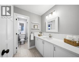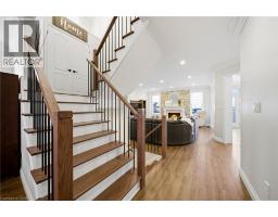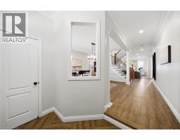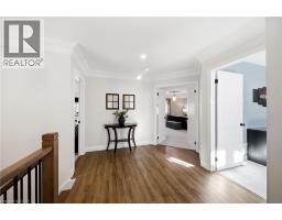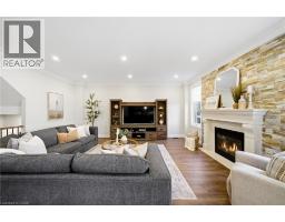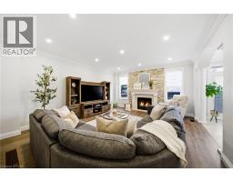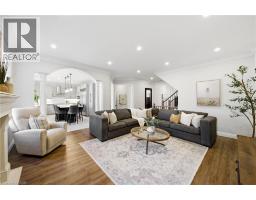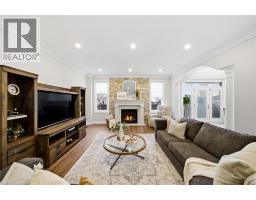 Nestled in family-friendly Alton Village, this meticulously renovated home offers the perfect blend of style, comfort and convenience—steps to top-rated schools, parks and all amenities. The front exterior boasts exceptional curb appeal, highlighted by a charming balcony and inviting alcove entrance. Step through double doors into a welcoming foyer. Thoughtfully curated upgrades are showcased throughout, rich hardwood floors, stunning staircase w wrought iron spindles, pot lights, shutters, updated light fixtures, crown moulding and custom closets. The heart of the home is the beautifully redesigned kitchen, featuring a large quartz island with seating, SS appliances, double ovens, wine fridge and seamless access to the backyard deck—ideal for effortless indoor-outdoor entertaining. The kitchen opens to a warm and inviting family room anchored by a gas fireplace with custom surround. A separate dining room with 3 arched windows provides an elegant setting for hosting. Convenient main-level laundry completes this level. Upstairs, you’ll find 4 spacious bedrooms filled with light. The primary suite is a true retreat, offering a walk-in closet and renovated ensuite with a deep soaker tub and glass shower. The main bathroom has also been tastefully updated. Finished lower level expands your living space with a large open-concept recreation room, office area, gym zone, and stylish barn door leading to generous storage. Step outside to your private backyard oasis featuring a saltwater fibreglass pool (lifetime warranty), composite deck with glass railings, landscaped patio & a BBQ gas line. Additional updates provide peace of mind, including waterproofing membrane completed before basement finishing, replaced garage doors, epoxy garage floors, EV charging station, roof (2022), windows & doors (2019), furnace & hot water tank (2020) and A/C (2021). Set in a prime location close to trails, parks and amenities, this truly turnkey home is ready for you to move in and enjoy. (id:61594)