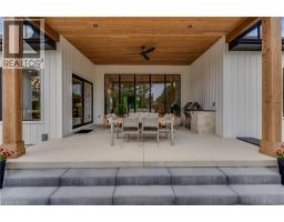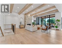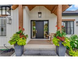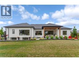This exceptional custom bungalow, offers nearly 6,000 sq ft of finished living space on a serene country lot under an acre. With 6 bedrooms, 4 bathrooms, and an oversized 3-car garage with parking for 6 more, this home is ideal for large or multigenerational families. Inside, 10' ceilings throughout the main floor and a vaulted 12' great room with a floor-to-ceiling natural stone fireplace create an open, airy feel. White oak engineered hardwood spans both levels, adding warmth and elegance. The chef’s kitchen features a double waterfall island, top-of-the-line appliances, an oversized built-in fridge/freezer, and connects to a stunning walk-through pantry with second fridge, white oak counters, and custom cabinetry. The dining area leads to a covered concrete porch with built in natural stone outdoor BBQ, perfect for entertaining. The primary suite includes white oak beam accents, a gas fireplace, luxurious ensuite, custom walk-in closet, and direct access to the laundry room. A finished basement adds more bedrooms, bathrooms, and versatile space for guests, teens, or recreation. Large windows throughout flood the home with natural light. The backyard has plenty of room to add a pool. Located 12 Minutes to St,Jacobs, 13 Minutes to the Farmers Market, 14 Minutes to Waterloo and 22 Minutes to Kitchener. This is a rare opportunity to enjoy refined country living close to the city. The pool photo is virtually completed for the visual of how a pool could be done. (id:61594)
