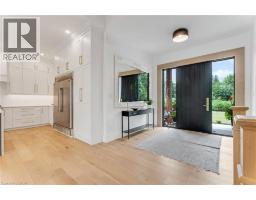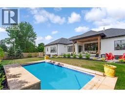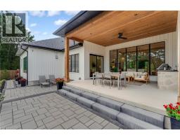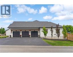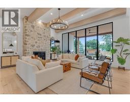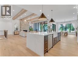 This exceptional custom bungalow, offers nearly 6,000 sq ft of finished living space on a serene country lot under an acre. With 6 bedrooms, 4 bathrooms, and an oversized 3-car garage with parking for 6 more, this home is ideal for large or multigenerational families. Inside, 10' ceilings throughout the main floor and a vaulted 12' great room with a floor-to-ceiling natural stone fireplace create an open, airy feel. White oak engineered hardwood spans both levels, adding warmth and elegance. The chef’s kitchen features a double waterfall island, top-of-the-line appliances, an oversized built-in fridge/freezer, and connects to a stunning walk-through pantry with second fridge, white oak counters, and custom cabinetry. The dining area leads to a covered concrete porch with built in natural stone outdoor BBQ, perfect for entertaining. The primary suite includes white oak beam accents, a gas fireplace, luxurious ensuite, custom walk-in closet, and direct access to the laundry room. A finished basement adds more bedrooms, bathrooms, and versatile space for guests, teens, or recreation. Large windows throughout flood the home with natural light. The backyard has plenty of room to add a pool. Located 12 Minutes to St,Jacobs, 13 Minutes to the Farmers Market, 14 Minutes to Waterloo and 22 Minutes to Kitchener. This is a rare opportunity to enjoy refined country living close to the city. (id:61594)