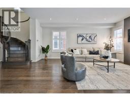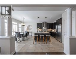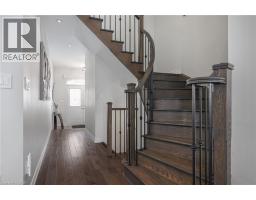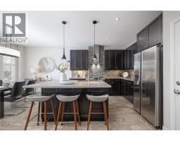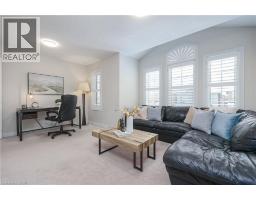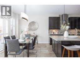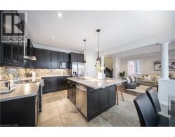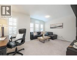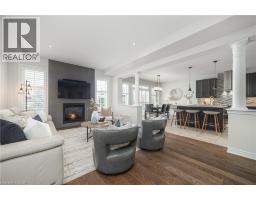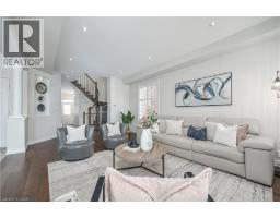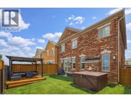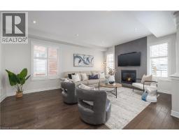 Nestled on a quiet and private street in sought-after Alton Village, this beautiful Fernbrook built home showcases the “Cornerstone” model, offering a beautifully designed layout that seamlessly blends comfort, style, and functionality. A double-door entry welcomes you into the open-concept main level, where 9-foot ceilings, hand-scraped hardwood flooring, pot lighting, and a gas fireplace with a custom feature wall that creates a warm and sophisticated ambience. The oak staircase with wrought-iron spindles adds an architectural element to the space. At the heart of the home is the chef-inspired kitchen, thoughtfully designed for both everyday living and entertaining. It features stainless steel appliances, upgraded cabinetry with ample storage, under-cabinet lighting, a stylish glass tile backsplash, and an impressive 5 ft x 6 ft oversized island—perfect for gathering with family and friends. The second level offers three spacious bedrooms and a bright, expansive family room that can easily be converted into a fourth bedroom if desired. The primary suite complete with a walk-in closet and a 5-piece ensuite featuring a glass shower and a relaxing soaker tub. Two additional generously sized bedrooms share a 4-piece bath, while the convenient upper-level laundry room adds everyday practicality. The basement features a 3-piece rough-in, cold room, and approximately 985 sq. ft. of additional space ready to be customized to suit your lifestyle. Step outside to your private, fully fenced backyard featuring a pergola and hot tub, backing directly onto a school and green space—providing both privacy and a serene setting for outdoor relaxation and entertaining. Perfectly located close to Burlington’s top-rated schools, parks, shopping, and amenities, this exceptional home offers the ideal blend of comfort and functionality. A must-see opportunity in one of Burlington’s most desirable communities. (id:61594)