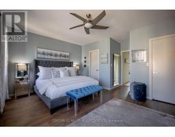 When youre ready to right-size but refuse to compromise on location or sophistication, this is your opportunity. Welcome to your new freehold lifestyle in Oakvilles coveted lakeside community of Lakeshore Woods. This end-unit townhome is among the largest in the complex, offering over 2,000 sq. ft. of living space along with the second-largest backyard!Every detail has been considered in this sleek, well-appointed home. The open floor plan boasts soaring 10 ceilings, wide-plank floors throughout and built-in cabinetry, including a dining room credenza. The kitchen impresses with an island with seating, extra-height cabinetry and top-tier appliances. The family room features a linear fireplace with porcelain surround, a custom bump-out for seating or a bar area and access to a small balcony. A discreetly located powder room near the entry ensures privacy, while the end-unit positioning floods the interior with natural light from additional windows.Upstairs, the large primary bedroom offers a walk-in closet plus wall-to-wall custom storage. A charming bump-out creates the ideal space for a vanity or reading nook. The bright and spacious en-suite features a double vanity. The second bedroom is generously sized and enjoys its own private en-suite with a soaker tub, perfect for guests.The versatile lower level, set at grade, can serve as a retreat, home office or a comfortable third bedroom for guests, complete with a full bath and double closet. Large sliding doors open to the fully landscaped backyard, a private oasis with a water feature, hardscaping, decking, lush plantings, gas bbq hookup and more.Sophistication meets convenience with a proper double-wide driveway and a single-car garage with inside access. A truly exceptional opportunity to enjoy refined living in one of Oakvilles most sought-after communities known for its nature filled walking trails, parks and steps to shopping and lakeside enjoyment. (id:61594)