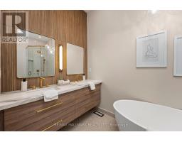 Step into this newly built 4+1 bedroom, 5-bathroom semi-detached residence at 46A Pape Avenue, where contemporary design meets everyday comfort across three thoughtfully designed levels. The open-concept main floor is anchored by a chefs kitchen featuring premium Decotech cabinetry with maple plywood interiors, a striking waterfall countertop, and an oversized island that doubles as the perfect spot for casual meals, family gatherings, or homework sessions. Prewired for both security and smart home technology, the home is future-ready and built with peace of mind in mind. Upstairs, spacious bedrooms provide privacy and relaxation, while a second-floor laundry room with custom cabinetry and deep utility sink adds efficiency to daily life. The crown jewel awaits on the third floor: a private 700+ Sqft primary retreat with soaring 10-foot ceilings, a spa-inspired 5-piece ensuite, and a generous walk-in closet. The finished lower level offers remarkable versatility with a bright additional bedroom, full bath, and walk-out access to a private patio - perfect for a guest suite, home office, or in-law setup. Outdoors, the detached garage goes beyond expectations with dual access, a dedicated 100-amp panel, EV charger, and Wi-Fi-enabled openers. The pull-through design allows seamless extension of the backyard or extra parking as needed. This residence is more than a home - its a lifestyle upgrade, delivering modern elegance, family functionality, and East End convenience in one exceptional package. OFFERS ANYTIME! (id:61594)