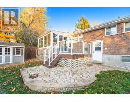 Large Original 3 Bedroom Bungalow with a separate entrance to a 2-bedroom in-law suite. Nestled in a quiet, mature neighborhood across from a beautiful park. This spacious house offers comfort and functionality. The main level features an updated kitchen with granite countertops, a bright sunroom addition with walkout to deck, a massive primary bedroom, a bathroom/laundry room combination, a built-in bar in the dining room and hardwood floors. The fully finished basement is perfect for extended family or additional living space. Beautifully landscaped yard with stunning flagstone walkways and patios, a gorgeous gazebo and storage shed. The double car garage features a 16-foot ceiling and a large walk-up mezzanine for extra storage or workspace. (id:61594)