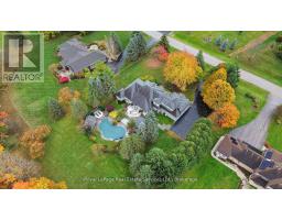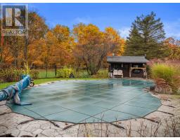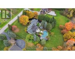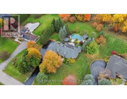 Welcome to 47 Fox Run Drive, an amazing over 4000 sq ft 'bungaloft' nestled on a treed and landscaped over 1 acre lot backing onto a protected forest area. An easy flowing design with 4 bedrooms and 5 Bathrooms A winding walkway leads to the custom double door entry to the spacious Foyer. To the left is the separate Dining Room and to the right the main floor Family Room. Straight ahead is the beautiful Living Room with tall cathedral ceiling and gas fireplace that overlooks the massive garden with salt water pool, screened in Gazebo and Cabana and covered deck. The gleaming white Kitchen features granite counters, centre island, eating area and walkout to covered deck. Tall ceilings continue into the Primary Bedroom which is located at the back of the house also overlooking the gardens with another walkout and a 4 piece ensuite bathroom. There are an additional bedroom (currently used as office) on the main level as well as a 4 piece semi-ensuite bathroom. The main surprise is the separate entrance to an in-law/nanny suite/area which has a 3 piece bathroom, two Bedrooms, Office and Sitting Area.. All necessities are a short drive away and major highways are close. This is a 'must see' home waiting for your visit. (id:61594)