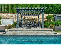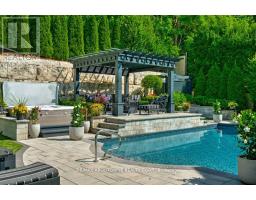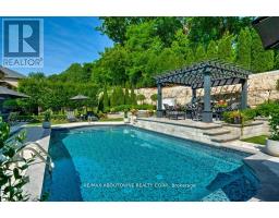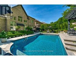 Welcome to 47 Legacy Lane a true gem nestled in the heart of Ancaster within an exclusive, private gated community. This stunning home is the perfect blend of luxury, craftsmanship, and functionality, offering a thoughtfully curated lifestyle both inside and out. From the moment you arrive, the quality of this home is unmistakable. The exterior has been transformed into a private resort-like oasis featuring concrete stone inlays, a hot tub, a pergola with a fire table, a fully equipped outdoor kitchen with built-in BBQ, and a breathtaking saltwater pool. Surrounded by mature trees, professional landscaping, perennial gardens, artificial turf, and a built-in irrigation system, the grounds offer beauty and ease of maintenance year-round. Inside, the home continues to impress with oversized doors and trim, hardwood flooring throughout, and 10-ft ceiling's that enhance the sense of space and elegance. The open-concept layout includes grand principal rooms, a dramatic two-storey family room, and a dreamy chefs kitchen perfect for entertaining. The MAIN FLOOR PRIMARY SUITE offers comfort and privacy, while the additional four bedroomsand3.5 bathrooms provide ample space for family and guests. The expansive lower level features above-grade windows and is brimming with potential ideal for creating a custom gym, media room, or in-law suite. Perfectly located near conservation areas, walking trails, golf courses, top-rated schools, shops, and major highways, this is a rare opportunity to own a turnkey luxury home in one of Ancaster's most coveted communities. Move in and start enjoying everything this exceptional property has to offer. (id:61594)