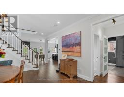MODERN, OPEN CONCEPT LIVING AT THE DOORSTEP OF HISTORIC DUNDAS This thoughtfully renovated home offers a spacious, open-concept main level with hand-scraped hardwood floors, 9-ft ceilings with crown moulding, and numerous pot lights. The gourmet kitchen is a true showstopper, featuring extended cabinetry with pantry and pot drawers, a coffee bar, quartz countertops, a dramatic 10+ ft waterfall island with breakfast bar, and stainless-steel appliances. A sunlit breakfast area walks out to a large deck with an awning, while the family room showcases a gas fireplace with a sleek new surround. A separate dining room and updated powder room complete this level.Upstairs, the primary suite features a custom walk-in closet with organizer and a spa-inspired ensuite with double sinks, a freestanding soaking tub, and a glass-enclosed barrier free shower. Three additional bedrooms and a small study area share an updated 5-piece bathroom. The finished walkout basement offers a spacious rec room, kitchenette, bedroom, 3-piece bathroom, and second laundry, making it ideal for a nanny or in-law suite. Outdoor living is exceptional with an upper deck, lower deck, and a covered hot tub with gazebo and privacy drapes.Additional features include a beautifully renovated main-floor laundry with garage access, a spacious double-car garage, and a prime location directly across from a park. Just minutes away, downtown Dundas offers a vibrant arts and culture scene, charming boutiques and cafés, plus award winning restaurants. Known for its historic character and natural beauty, Dundas is surrounded by scenic waterfalls, dramatic escarpment views, and the Dundas Valley Conservation Area, where residents enjoy hiking, biking, and year-round outdoor adventures. (id:61594)