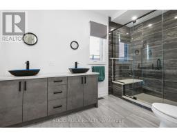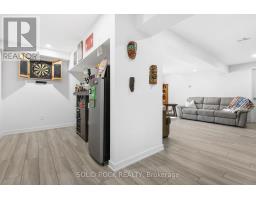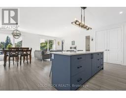 This custom-built 4 bedroom bungalow perfectly blends refined living, modern design, and urban convenience - just a five-minute stroll from downtown Arnprior. Tucked away on a quiet private lane, this home offers the best of both worlds: peace and privacy, with cafés, restaurants, boutiques, and the Algonquin Trail all moments away. Step inside and experience an immediate sense of style and sophistication. A spacious foyer opens into a bright, open-concept great room with soaring ceilings, elegant pot lighting, and premium finishes throughout. The chef-inspired kitchen features quartz countertops, a sleek backsplash, and high-quality appliances - ideal for both intimate dinners and lively entertaining. The dining area, illuminated by a statement fixture, overlooks the landscaped yard, while the living room's custom oversized patio doors invite you to step out onto the private deck - perfect for summer evenings and weekend gatherings.The primary suite is a true sanctuary, offering a walk-in closet and a luxurious spa-style ensuite with double vanities, an oversized shower with bench seating, and dual rain shower heads. A second bedroom (currently used as an office) provides a serene space for work or relaxation, while the mudroom and laundry with direct garage access bring effortless functionality to everyday living.The lower level extends the home's versatility, featuring two additional bedrooms joined by a dual-entry bathroom, a spacious family room, and a flexible space currently styled as an office and bar - perfect for teens, guests, or weekend entertaining. Outside, two driveways and an oversized double-car garage provide exceptional parking and storage options. Every detail of this home has been designed for comfort, style, and ease - ideal for families, professionals and retirees who value high-end living with small-town charm. Experience the lifestyle. Live steps from it all. (id:61594)