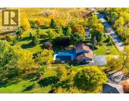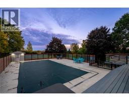 A rare opportunity to own a private retreat just minutes from the city! Backing directly onto the Royal Botanical Gardens, this nearly one-acre property offers unmatched privacy, space, and year-round natural beauty. Surrounded by mature trees and wildlife, with access to endless walking trails, it’s a tranquil setting that feels worlds away while remaining close to every amenity. This spacious 2-storey home is designed for family living and entertaining. The sun-filled main floor features a welcoming foyer, a bright living room with a large picture window, and an adjoining dining area with modern lighting. The updated kitchen offers ample cabinetry, stainless steel appliances, a centre island, a coffee/bar station, and brand new quartz countertops with new sinks and faucets. The spacious family room with a wood stove provides access to the backyard, as do the dining area and kitchen. A powder room and a mudroom with laundry complete the main level. Upstairs, the primary bedroom includes dual closets and a renovated 3-piece ensuite. Three additional bedrooms with generous windows and in-closet lighting share a 5-piece bath. The lower level is perfect for an in-law suite or teen retreat, with a separate entrance, full kitchen, living room, den, 3-piece bath, laundry, and a walkout to a private patio. Outdoors, enjoy a sparkling swimming pool, hot tub, expansive patio and deck areas, and a large open green space, all framed by lush gardens and the peaceful presence of local deer. A large garage and ample driveway parking add convenience, with interior access to the mudroom and basement workshop. Ideally located near top schools, downtown Dundas, Hamilton, and Waterdown, this serene property offers easy access to highways, golf courses, and scenic conservation areas. A true four-season sanctuary, and only the second time ever offered for sale. Updates include vinyl siding, eaves, soffits, fascia, front door, and some windows (2025), heat pump (2023), and many more. (id:61594)