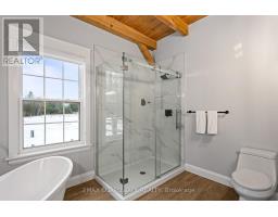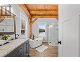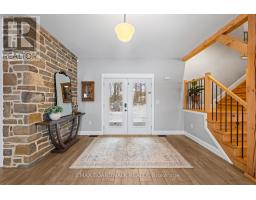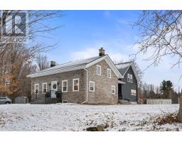Beautifully restored 1848 stone home set on 41 acres of mixed trees and cleared land. Fully restored with a stunning addition completed in 2018, this property blends original character with modern comfort. Major updates include septic system (2015, cert on file), drilled well (2016, record on file), forced air furnace (2017), central air (2017), and a Jøtul wood stove installed in 2020 (WETT certified). Stone exterior repointed in 2015. Inside, the home showcases vaulted ceilings, exposed timber beams, recessed windows, a metal roof, porcelain tile flooring on the main level, and hemlock flooring on the upper level. The spacious farmhouse kitchen features a walk-in pantry and picturesque views of the surrounding countryside. The main floor continues with an open-concept dining and living room warmed by the wood stove. Offering 5 bedrooms and 3 bathrooms, including a generous primary suite with a 5-piece ensuite and soaker tub, plus upper-level laundry and a finished basement for additional living space. The 60x40 barn/garage was built in 2023 and provides exceptional versatility, featuring a metal roof, poured concrete foundation, 200-amp panel, and insulated doors. Currently configured to accommodate up to 7 vehicles. A rare opportunity to own a beautifully restored historic home with extensive modern upgrades, exceptional outbuildings, and acreage suited for a wide range of uses. (id:61594)